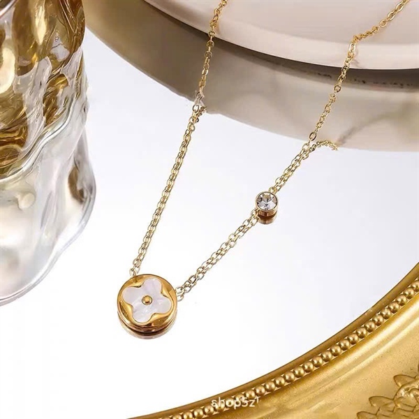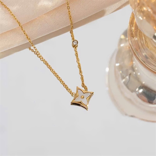 Dây chuyền LV ẩn xà cừ trắng titan - Vuông vàng