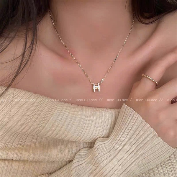 Dây chuyền LV ẩn xà cừ trắng titan - Tròn bạc