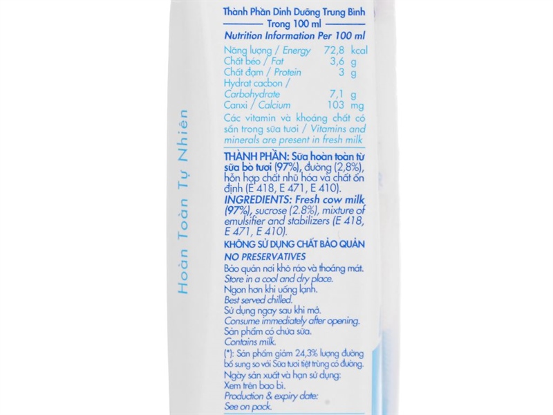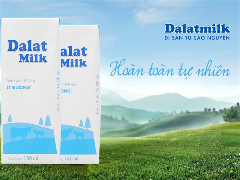 DaLat Milk Sữa tươi tiệt trùng ít đường 12x(4x180ml) - hộp
