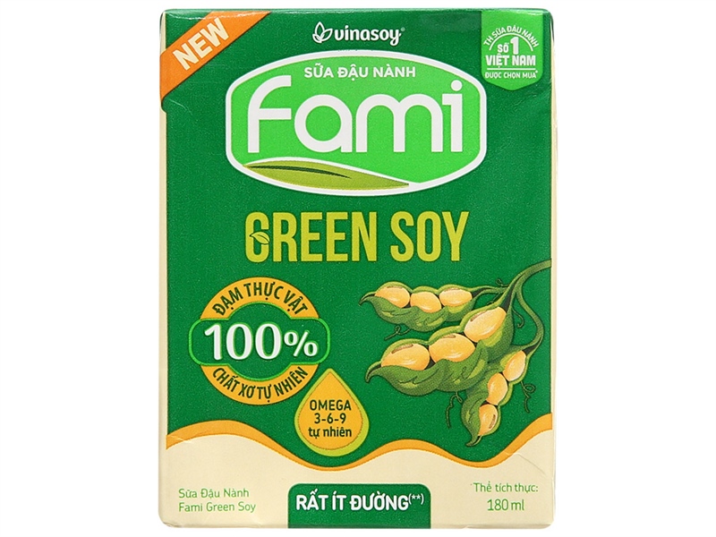 Sữa đậu nành Fami Green soy rất ít đường 6x180ml