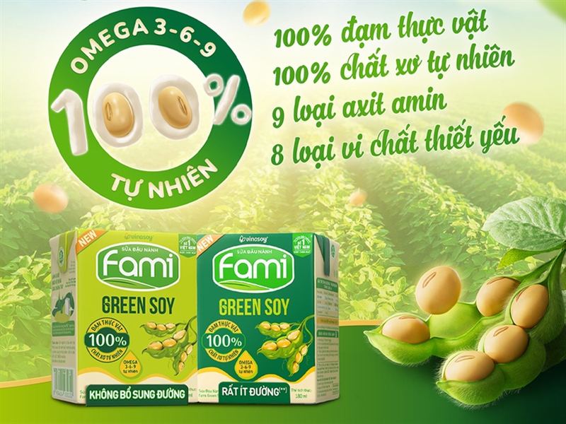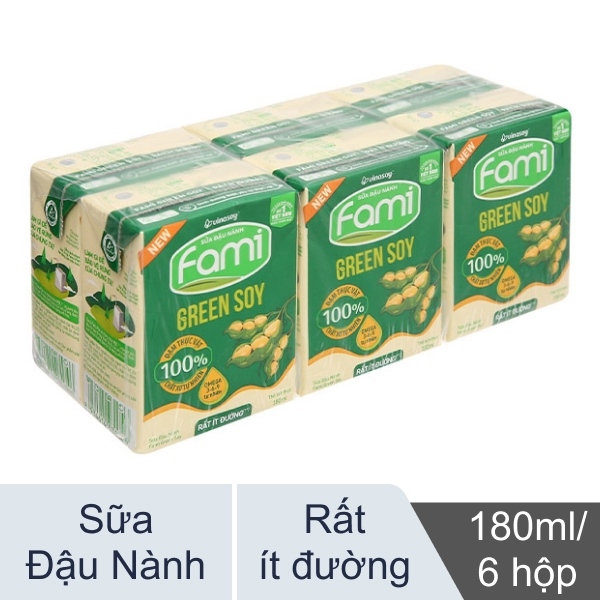 Sữa đậu nành Fami Green soy rất ít đường 6x180ml - hộp
