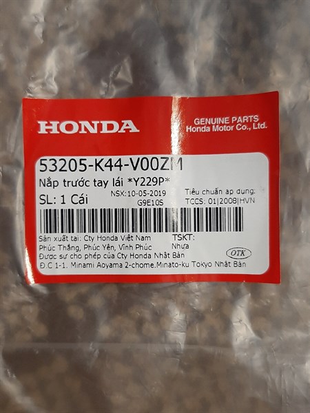 53205-K44-V00ZM Nắp trước tay lái có tem Vision 2018, màu vàng nhạt *Y229P*