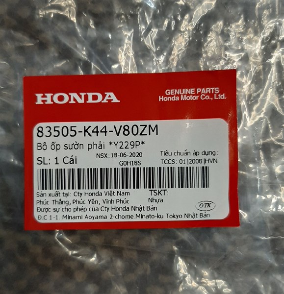 Sườn phải Vision 2018, màu vàng nhạt *Y229P*