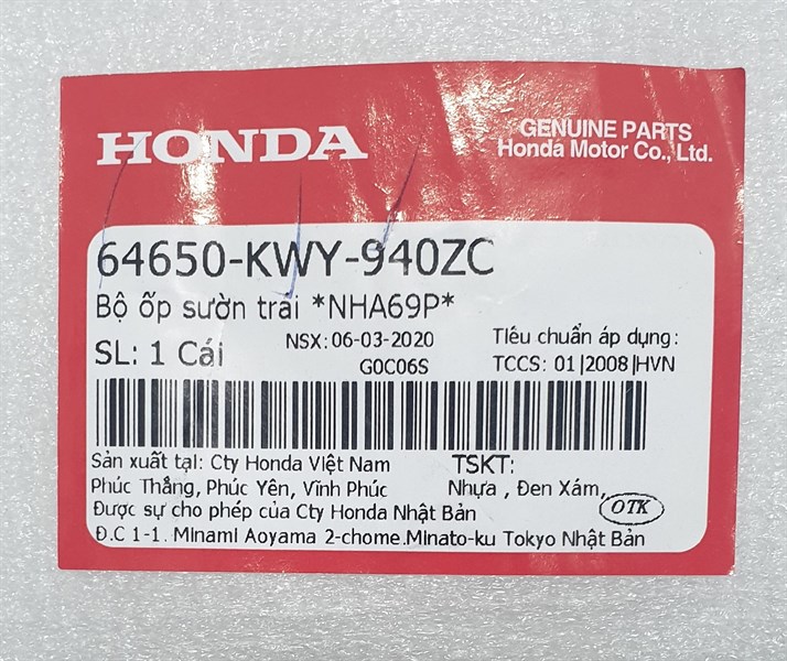Sườn trái có tem Wα 2008, màu đen *NHA69P*