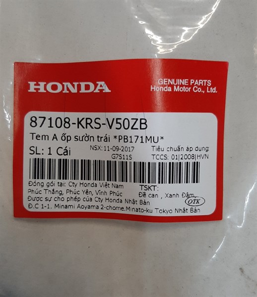 Tem A ốp sườn trái W cũ +, màu xanh tím *PB171MU*
