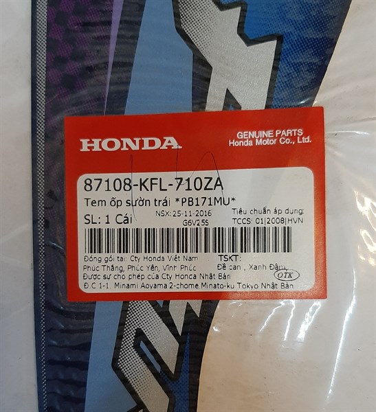 Tem ốp sườn trái Fu 1 2003, màu xanh tím *PB171MU*