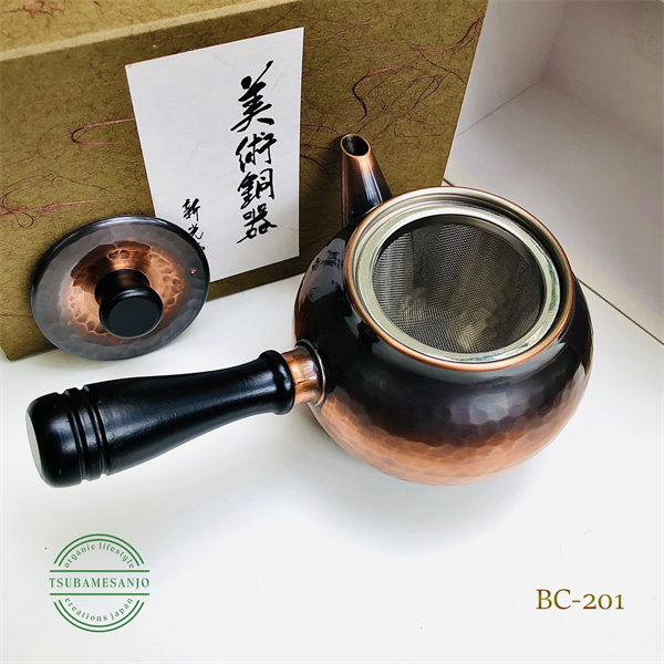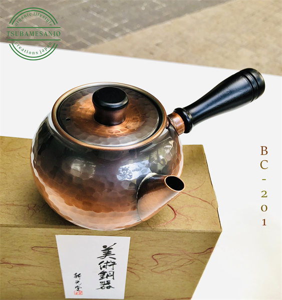 Ấm Đồng Đỏ Pha Trà 370ml HAMMERED BC201 - Tay gỗ ngang - Cái