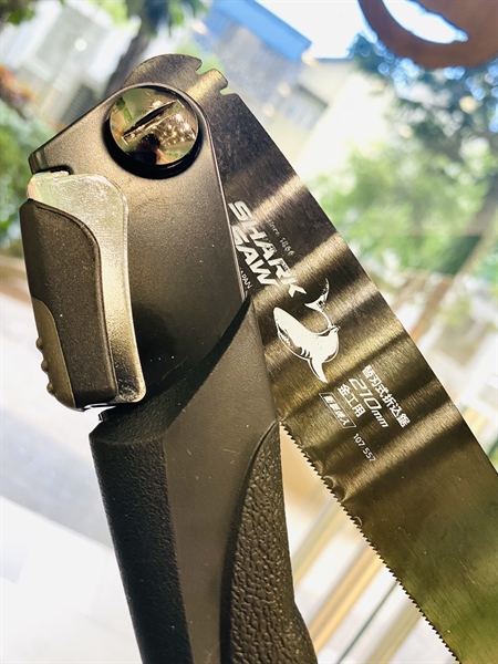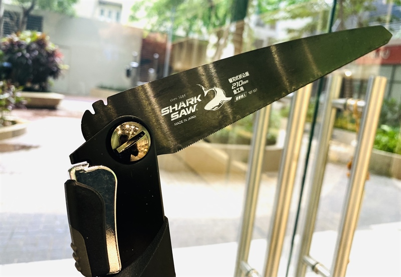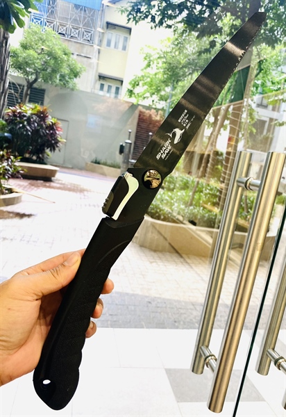 Lưỡi răng cưa nhỏ, mịn. giúp cưa rất nhanh. Mở cưa: Kéo lưỡi cưa ra khỏi tay cầm cho đến khi được khóa lại cố định. Gấp cưa: Vừa ấn nút trên tay cầm vừa gấp lưỡi cưa.