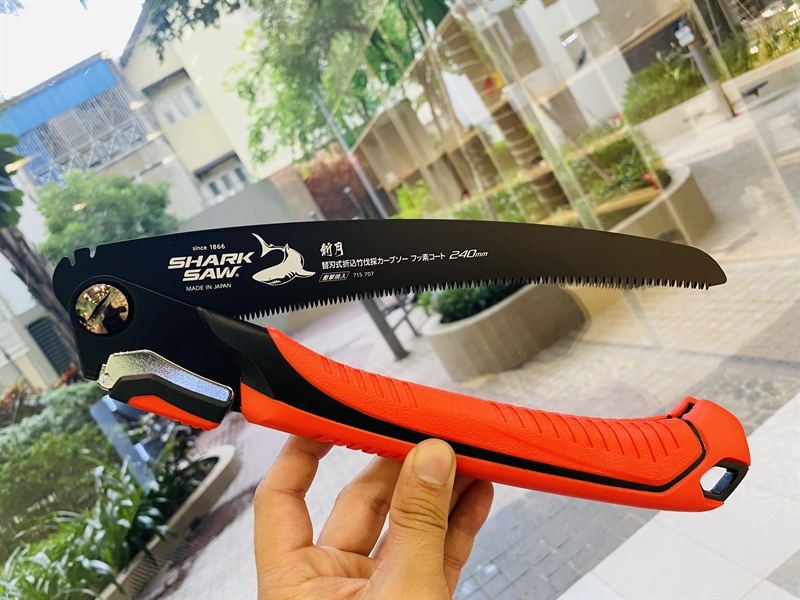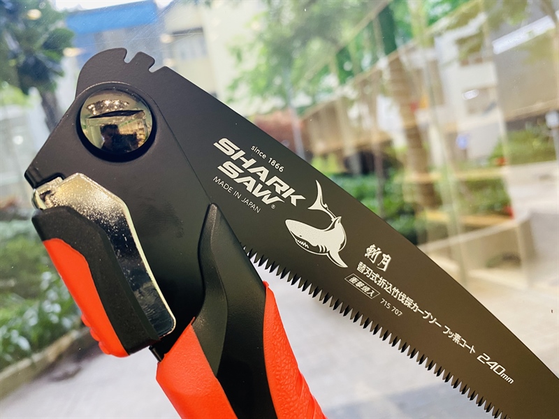 Lưỡi cưa mịn đều, giúp cưa rất nhanh. Mở cưa: Kéo lưỡi cưa ra khỏi tay cầm cho đến khi được khóa lại cố định. Gấp cưa: Vừa ấn nút trên tay cầm vừa gấp lưỡi cưa.