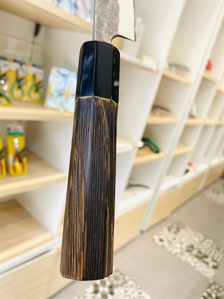 Thân dao: 3 lớp - lõi dao làm từ thép các bon Yasuki trắng số 2, 2 mặt ngoài là thép không gỉ Nhật Bản.