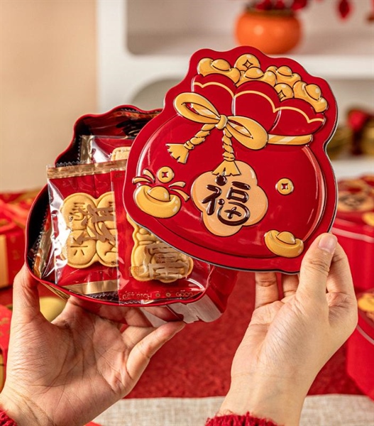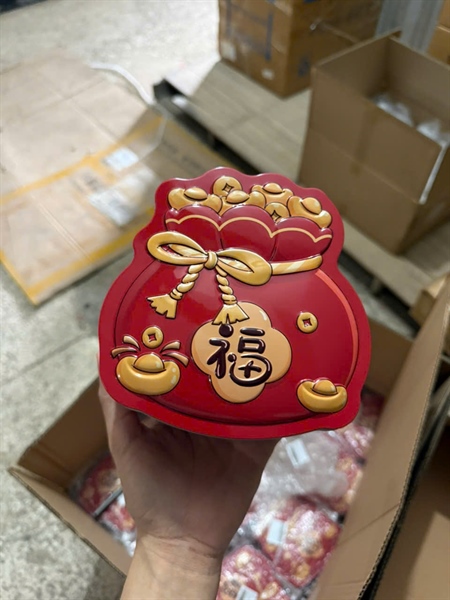 Hộp thiếc túi vàng đỏ - size 15*14.7* 7cm( 60c/ thùng)