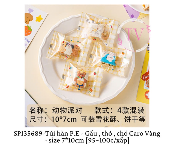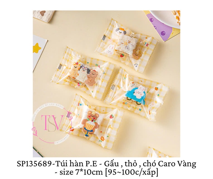 Túi hàn P.E - Gấu , thỏ , chó Caro Vàng - size 7*10cm [95~100c/xấp]